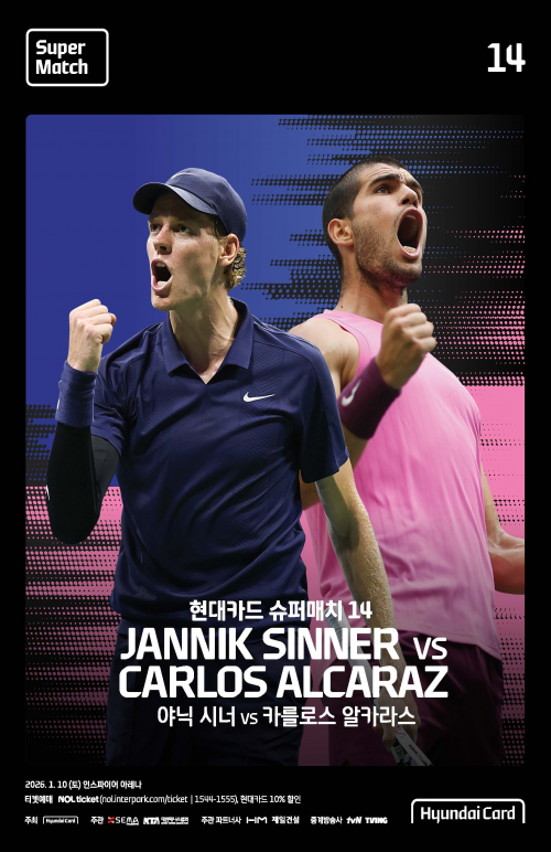 HyundaiCard Super match是由现代汽车旗下现代信用卡公司(Hyundai Card)主办的精英网球邀请赛,汇聚男子职业网球协会(ATP)世界排名前列的球员,以极具观赏性的强强对话而著称。此次参赛的阿尔卡拉斯与辛纳,正是当今男子网坛最具统治力的领军人物。过去两个赛季中,两人包揽了全部大满贯桂冠,每一次交锋都堪称经典。此番他们在迎仕柏的巅峰对决,必将成为一场万众瞩目的网坛盛事。